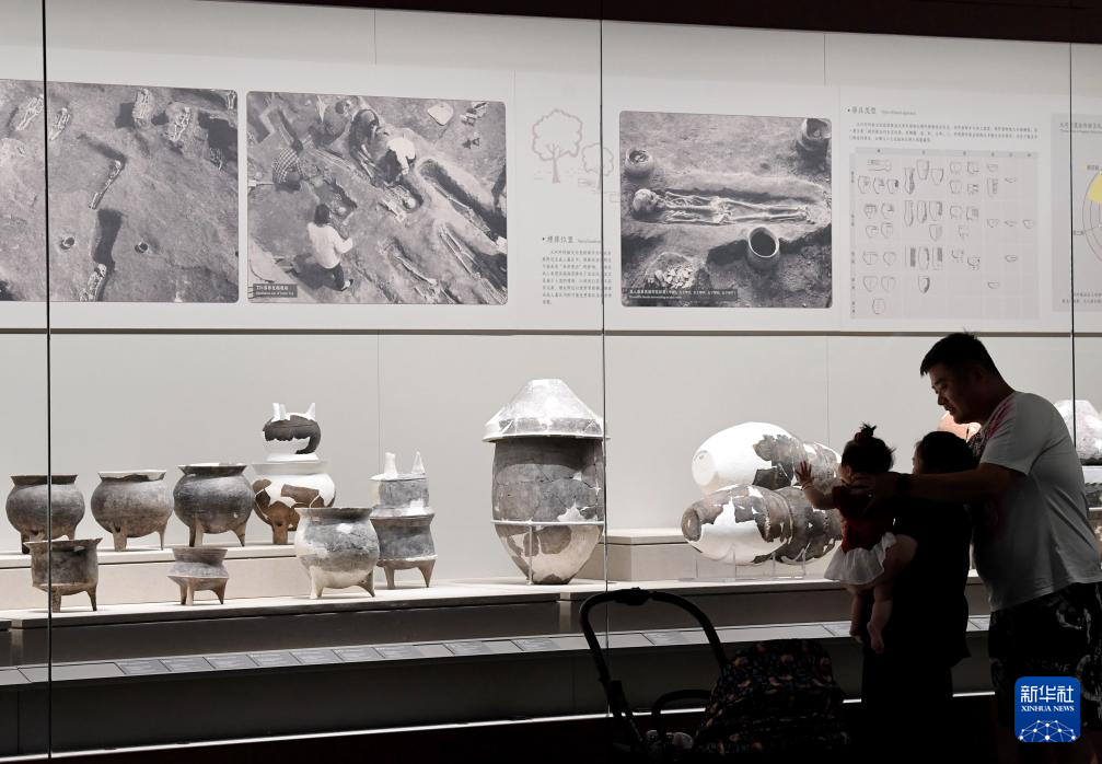 6月14日,参观者在大河村遗址博物馆新馆参观。