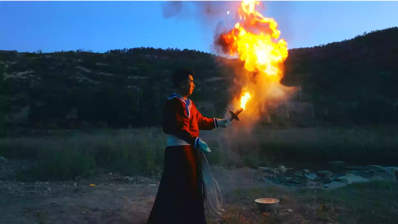 孟真为演出练习打火 受访者供图