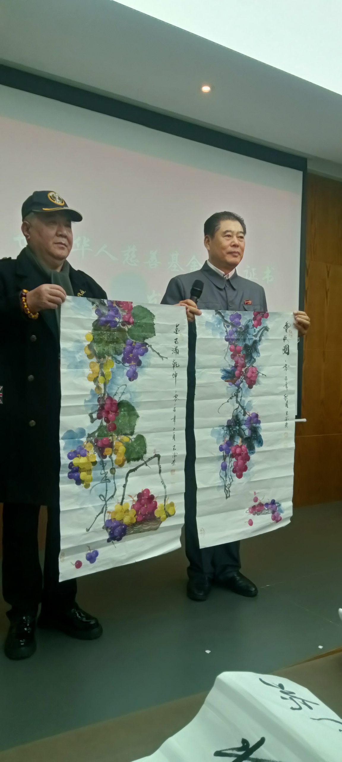 有著名特型演员周恩来总理(扮演者)著名军旅书画家王德贵先生在现场并祝贺讲话,同时代表健康公益行大讲堂和(国际慈善大使)王琦先生互赠书画作品。